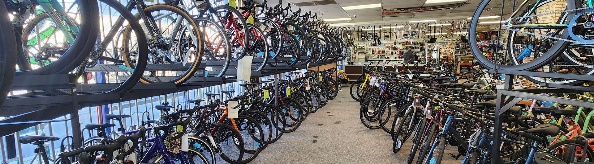 Whether you’re cruising, climbing, commuting or chasing that checkered flag, we got the bike in stock to have you out and pedaling in no time.
